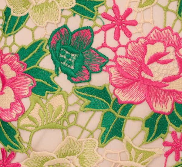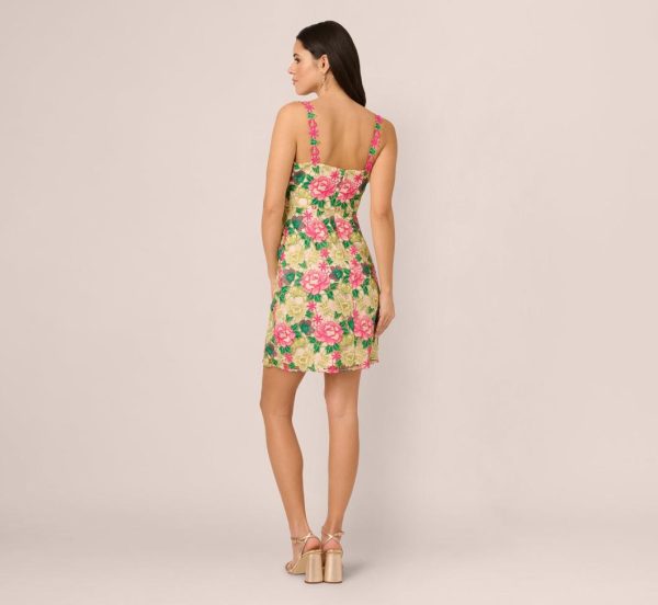 Radiant and vibrant, this sophisticated sleeveless sheath dress showcases exquisite allover floral embroidery that creates beautiful texture and dimensional appeal. The delicate straps feature matching multicolor floral lace for an elegant, face-framing effect. A discreet back zipper closure ensures a flawless, customized fit. Perfect for garden weddings, afternoon parties, or any special warm-weather occasion, this charming dress offers timeless elegance with modern sophistication.|