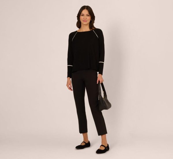 Adrianna Papell Women’s Boat Neck Slouchy Dolman Sleeve Raglan Sweater