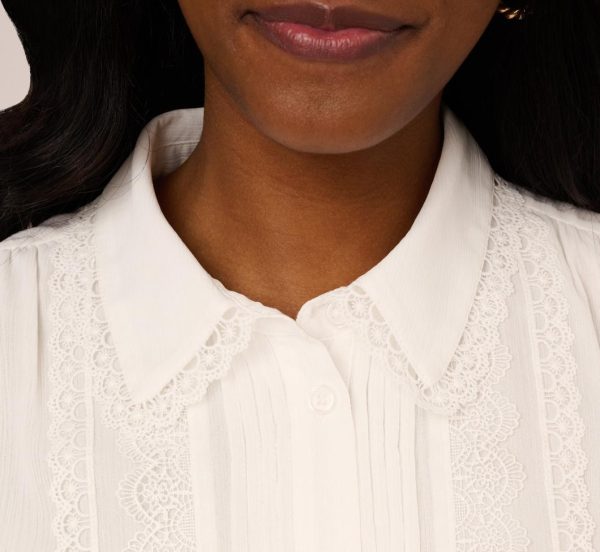 Soft semisheer fabric gives this sweet button front blouse its airy look and feel. Romantic details like fluttery cap sleeves, vertical pintucking, and delicate lace trim add nostalgic charm to the design. Gathered details at the center back and shoulders create a flowy silhouette. Whenever you want your ensemble to have a moment of modern femininity, this is the top you will reach for.|