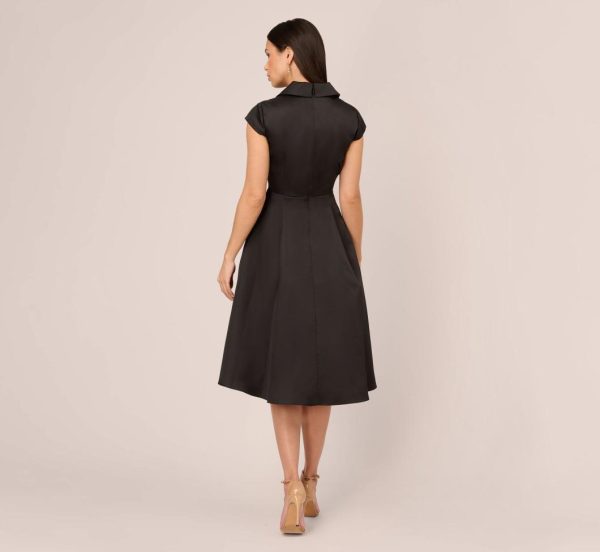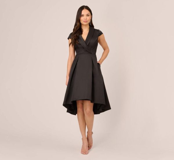 Cap Sleeve Mikado Midi Dress With High Low Skirt In Black | Women Adrianna Papell Party