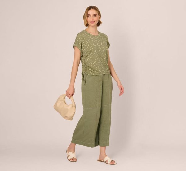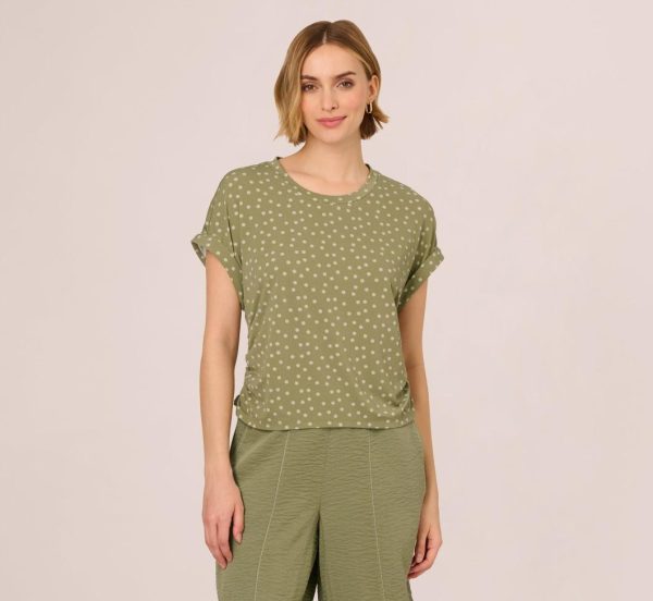 Add an effortless, playful touch to your everyday look with this dot print top. Designed in a relaxed fit, it features rolled cap sleeves for a laid back vibe and adjustable drawstring sides that let you cinch the fit just the way you like it. The soft knit fabric drapes comfortably, while the allover ditsy dot print adds a fun, whimsical feel. Perfect for everything from weekend errands to casual hangouts, you’ll love mixing and matching with this cute top.|