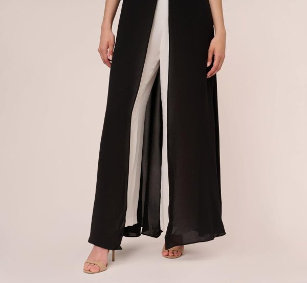 Colorblock Jumpsuit With Skirt Overlay In Black Ivory | Women Adrianna Papell Work Dresses