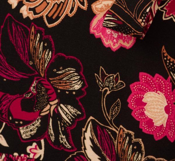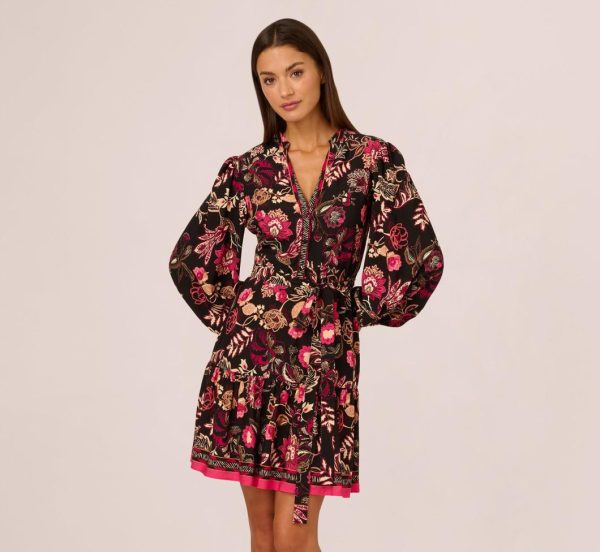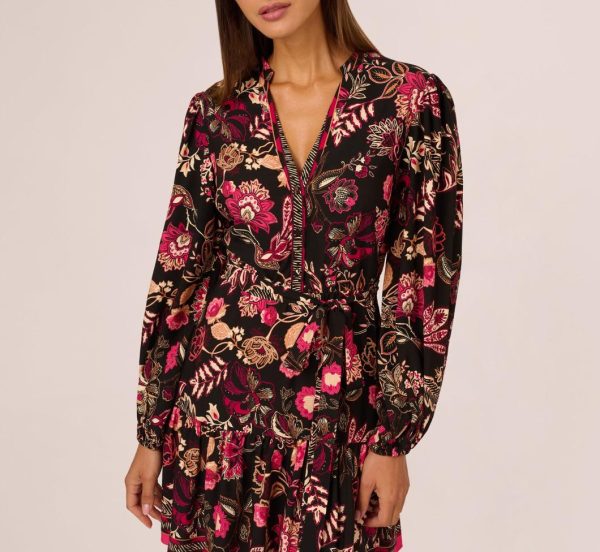 Floral Printed V Neck Button Front Dress With Long Sleeves In Black Mu | Women Adrianna Papell Vacation Dresses
