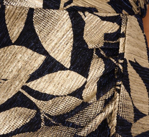 Foil Printed Asymmetric Gown With Ruffled Detail In Navy Gold | Women Adrianna Papell Printed Dresses