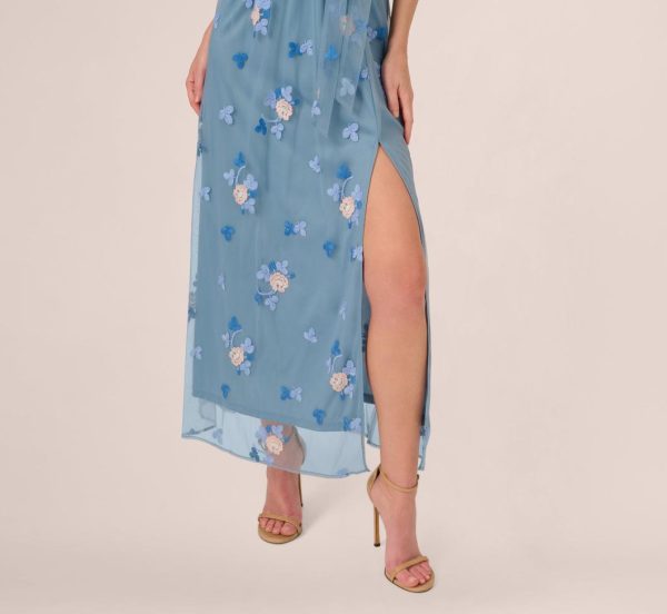 This elegant sleeveless maxi dress features a delicate sheer mesh overlay adorned with exquisite floral embroidery in complementary shades, creating a sophisticated romantic aesthetic. The illusion sweetheart neckline beautifully frames your features while the back slit adds graceful movement to the flattering A-line silhouette. Designed with a convenient back zipper, elastic waistband, and adjustable waist tie for a perfectly customized fit. Perfect for professional settings, garden parties, brunches, and special occasions where timeless elegance is required.|
