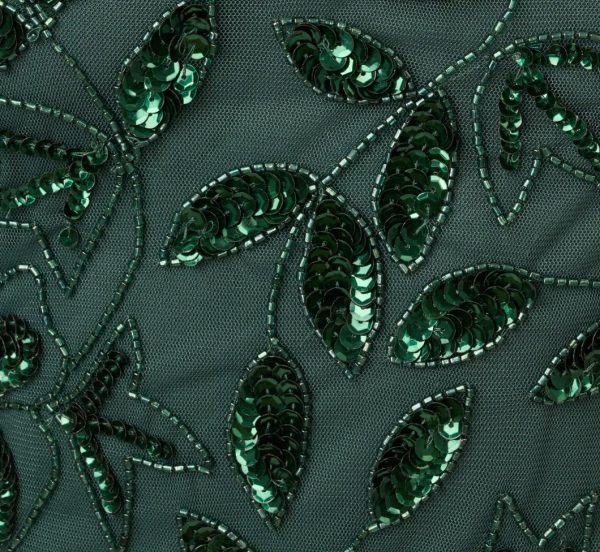 Hand Beaded Short Sleeve Floral Godet Gown In Dusty Emerald | Women Adrianna Papell Long Dresses