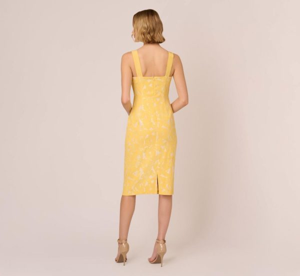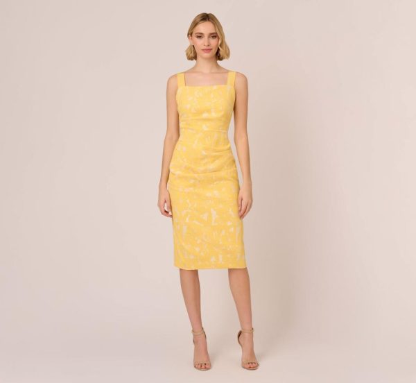Hibiscus Jacquard Sheath Dress With Tucked Details In Sun | Women Adrianna Papell Printed Dresses
