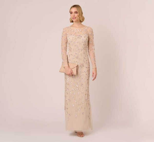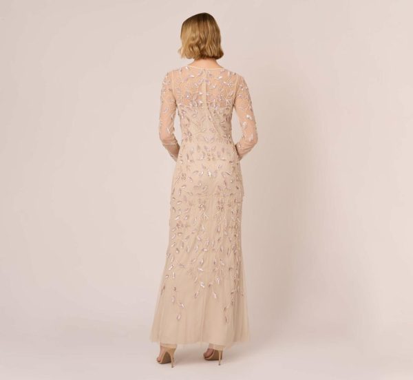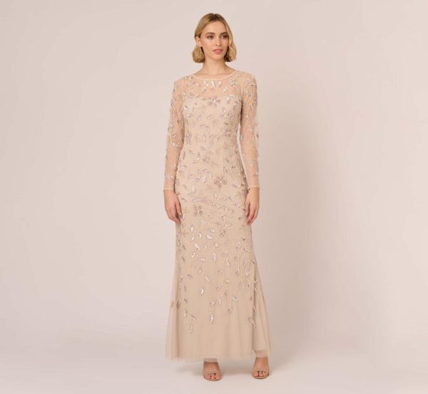 Dripping in sparkling details, this floral beaded gown will light up any occasion you walk into. This formal dress features a boat neckline, sheer yoke that gives an illusion of a sweetheart bodice, sheer long sleeves, and a soft skirt. Partially lined, this evening gown is crafted from luxe mesh that is beaded all over with a mix of floral designs. A sheer back with zipper closure completes this beaded dress. Styled with nude heels and sparkling jewelry, this floral beaded gown is the perfect companion for formal parties and black-tie galas.|