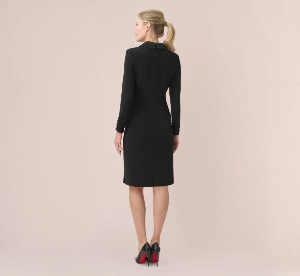 Jersey And Satin Short Sheath Tuxedo Dress In Black | Women Adrianna Papell Work Dresses
