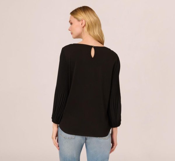 Turning your everyday into so much more just got easier with our knit top with pleated woven three-quarter sleeves. Button back closure with keyhole opening. Team with jeans or pants and create a look that goes from day to night with ease.|