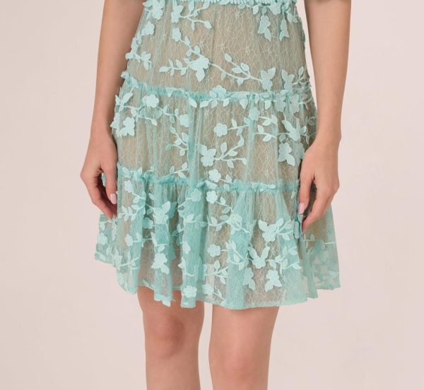 Soft and romantic details make this lace dress a feminine look. This A-line dress features a v-neckline, empire waist, and sheer elbow-length sleeves. Fully lined with nude fabric through the body, this dress is crafted from a sweet floral embroidered lace fabric. The soft skirt falls intiers and scalloped edging adds a delicate touch to the hems of this dress. A zipper closure at the center back closes this mid-length dress. Style this lace dress for the bride-to-be or on a night out with heels and a clutch to match.|