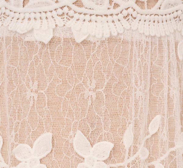 Lace Embroidered V Neck Dress With Elbow Sleeves In Ivory Nude | Women Adrianna Papell Work Dresses