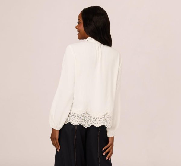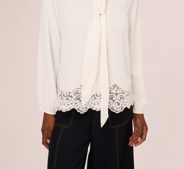 Lace Hem Tie Neck Blouse In Ivory | Women Adrianna Papell Vacation Dresses