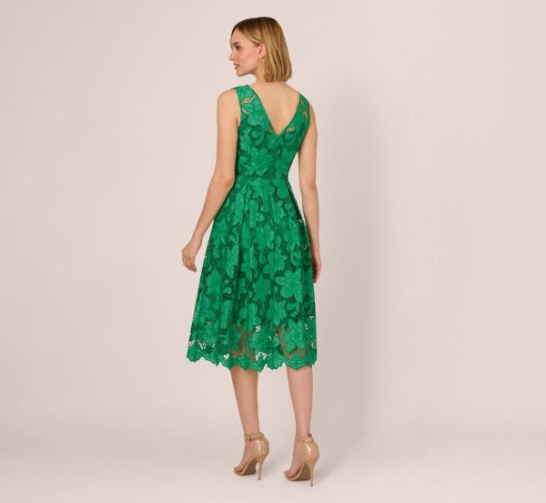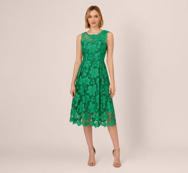 Classic elegance never goes out of style and neither will this lace midi dress. This party dress features a fitted bodice with a sheer boat neckline and a flared mid-length skirt. Lined from the bust to just above the skirt hem, this fit-and-flare dress is crafted from lace with 3D floraldetailing throughout and cutaway details at the hems. A v-back with sheer details at the straps and hidden zipper closure completes this sleeveless dress. From formal events to cocktail parties, this lace midi dress will shine on any occasion with the right accessories.|