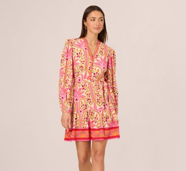 A bright and colorful floral print gives this cute dress its sunny look with bishop sleeves adding to the boho vibe. The A line flounce skirt is highlighted with a contrast border print around the hem. A button front V neck bodice adds a polished touch and a matching tie belt defines the waist. Perfect for a day at the park or brunch with the girls, this is that effortless but elevated dress that you’ll reach for over and over again.|