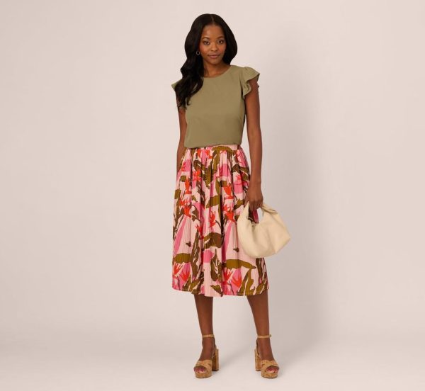 A botanical inspired print and fine vertical pleating gives this midi skirt dimension and texture. Perfect for mixing and matching, you’ll love the versatility this knit skirt offers. With a super comfortable elastic waistband, this pull on design will be your new favorite for long days at the office or sunny Saturdays out on the town.|