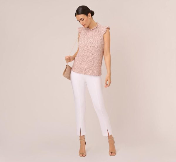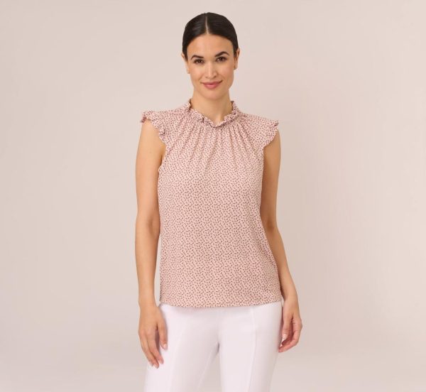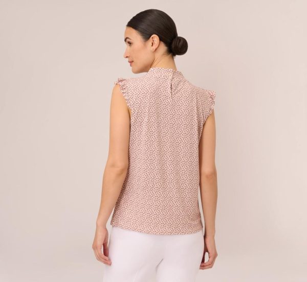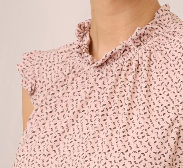 The perfect day to dinner top has arrived. This sleeveless blouse features a trapeze silhouette, ruffled mock neckline, and ruffle details at the arm holes. A keyhole with button closure adds a unique touch to the back of this work top. Soft and lightweight, this top is crafted from a stretch fabric you’ll be comfortable in all day. Paired with jeans for the weekend or a night out or a skirt or slacks for a day in the office, this cute top will look in place.|