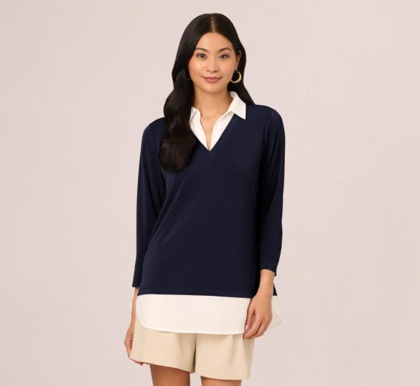 Experience elevated sophistication with this clever twofer sweater that delivers the perfect layered look without any extra bulk. The supple knit construction features flattering three-quarter sleeves for versatile wearability, while the sharp woven collar and peek-a-boo shirt cuff details create the illusion of a meticulously styled layered outfit. You’ll appreciate how effortlessly chic this top wears, making it your new go-to piece for both professional settings and casual weekend adventures.|