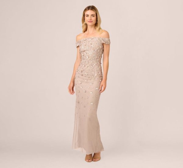 Off Shoulder Dress With Floral Embellishment In Marble | Women Adrianna Papell Floral Dresses
