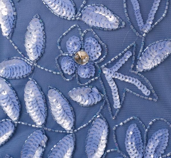 Arrive at your next special occasion in opulent style when you wear this elegant evening gown. The off the shoulder neckline balances the sweeping godet skirt for a graceful mermaid silhouette. Sparkling hand applied beading and sequins create a trailing botanical design that that cascades from the neck to the skirt. A back zipper closure completes the design. This shimmering dress matches carefully tailored craftsmanship with luxe romance for an unforgettable formal look.|