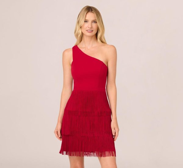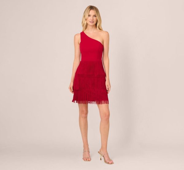 One Shoulder Fringe Mini Dress In Matador Red | Women Adrianna Papell Party