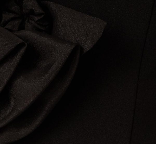 Striking and refined, this tailored sheath dress is crafted from sleek crepe fabric for a structured yet comfortable fit. The one shoulder neckline is adorned with sculptural organza rosettes, creating a dynamic face framing moment. Designed with a below the knee hemline, this dress creates a polished and elongated silhouette, perfect for cocktail events and dressy occasions. A side zipper closure ensures a seamless finish, making this dress as effortless to wear as it is stunning to look at.|