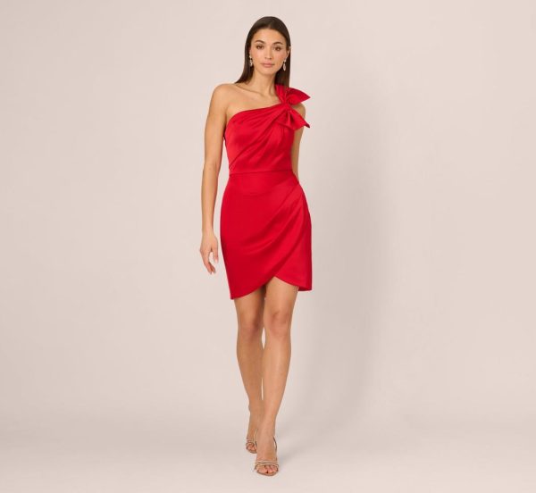 One Shoulder Satin Bow Cocktail Dress In Hot Pepper | Women Adrianna Papell Party