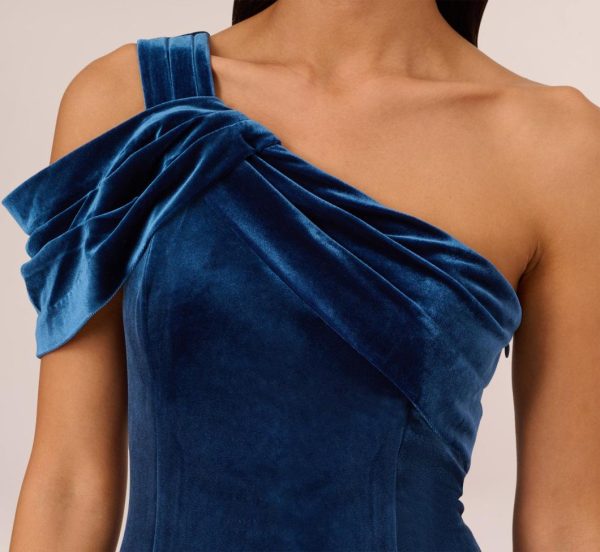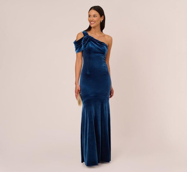 Experience timeless elegance with this stunning one shoulder velvet gown that masterfully blends vintage inspiration with contemporary sophistication. This exquisite formal dress features a beautifully tailored fitted bodice with a graceful drop waist design, complemented by a dramatic one shoulder neckline with artfully draped details and a single elegant strap. The signature mermaid skirt creates a breathtaking silhouette that flows into a captivating ocean wave-inspired hem. Crafted from luxurious velvet fabric, this elegant evening gown offers a radiant sheen and sumptuously soft texture that feels incredible against your skin. The side zipper closure ensures a flawless, seamless fit. Perfect for pairing with statement metallic heels and a beaded clutch, this show-stopping mermaid gown delivers a red-carpet ready look that commands attention at any formal occasion.|