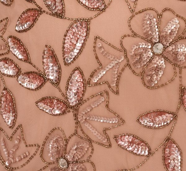 Beads and sequins shimmer on this stunning women’s gown from the boat neck collar to the full-length hem in an opulent botanical design. A blouson bodice adds dimension to this sleek mermaid gown silhouette. A back zipper closure finishes the dress. If you have a formal event coming up, this exquisite gown will be the perfect look for grand entrance.|