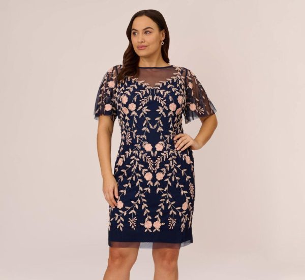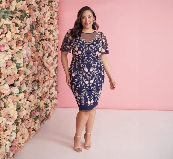 Feminine and fabulous, this beaded midi dress is the perfect piece to celebrate your next special night. Filled with eye-catching details all over, this stunning cocktail dress will help you feel your most fabulous for any occasion. This party dress features a boat neckline with illusion detail, frilly flutter sleeves and a back-zipper closure. Illusion details complete the back of this dress. Beautiful floral beading adorns the bodice and midi-length sheath skirt. Pair this gorgeous beaded cocktail dress with sparkling earrings and strappy heels to shine bright at your next party.|