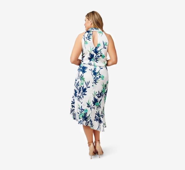 Experience effortless elegance with this beautifully designed halter dress featuring a premium stretch woven crepe fabric in a delicate floral pattern. The signature blouson silhouette gracefully contours your waist before flowing into a flattering A-line shape. Thoughtful details include a contemporary mock neckline, refined shirring accents, and a chic asymmetrical hemline for modern appeal. Secure back closure with hook-and-eye fastening. Perfect for brunch gatherings, romantic dinners, and special occasions like weddings and baby showers. An ideal travel companion that maintains its elegant appearance effortlessly.|