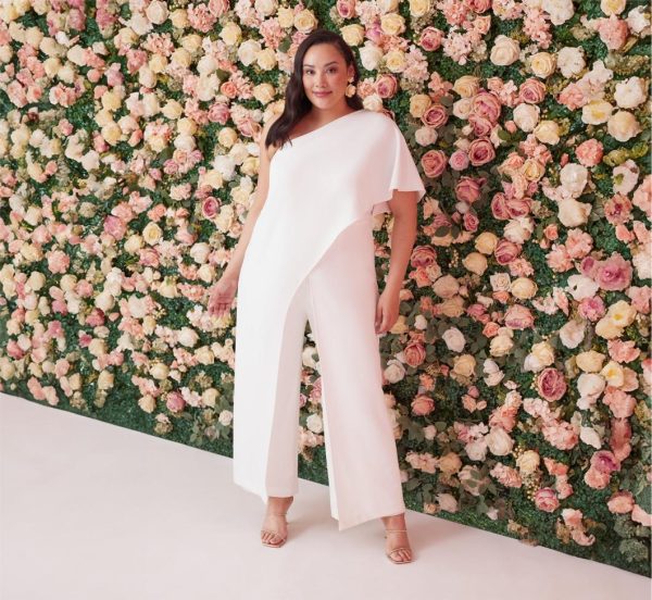 Modern elegance has arrived in this stunning new silhouette. This jumpsuit features a structured design, one shoulder silhouette with flutter sleeve, and long wide leg pants. Paired with sparkling peep toe heels, this beautiful jumpsuit is a striking look.|