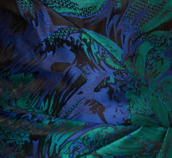 Romantic florals abound on the luxe fabrication of this mermaid gown. This formal dress features a one shoulder neckline, fitted bodice with pleated details, and mermaid skirt. A draped ruffle detail cascades from the waist to the skirt. Crafted from metallic floral jacquard fabric, thisevening gown is an elegant look from formal weddings to black-tie galas. A zipper closure at the side completes this dress. A nude heel and sequin clutch are the perfect additions to this floral mermaid gown.|