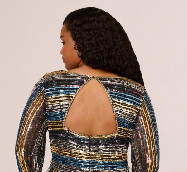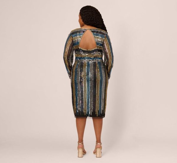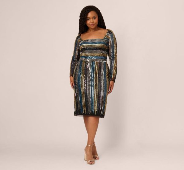From upscale nights out to a formal wedding, this long sequin sleeve dress is an appropriate choice. This cocktail dress features a square neckline, empire waist, and sheer long sleeves. Lined through the body and boasting a sequin-embellished mesh overlay, this sheath dress is a sparkling number. A zipper closure and keyhole cutout at the back of this midi-length dress complete the design. Add a pair of neutral high heels and bold earrings for a final flourish with this sequin dress.|