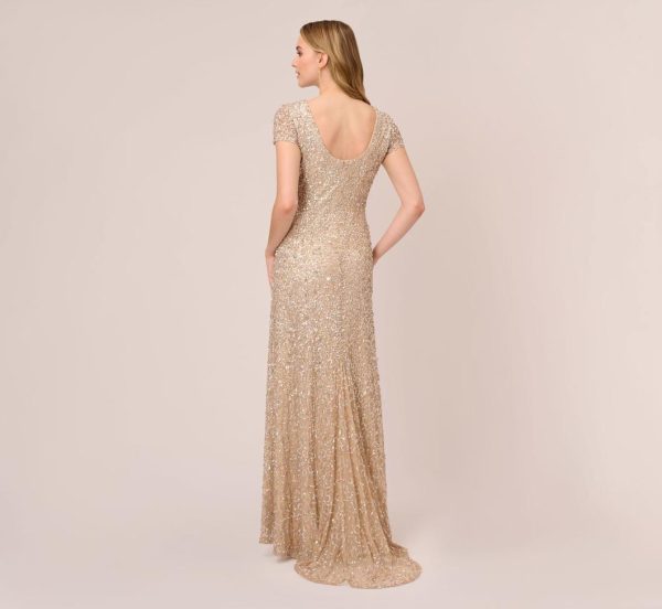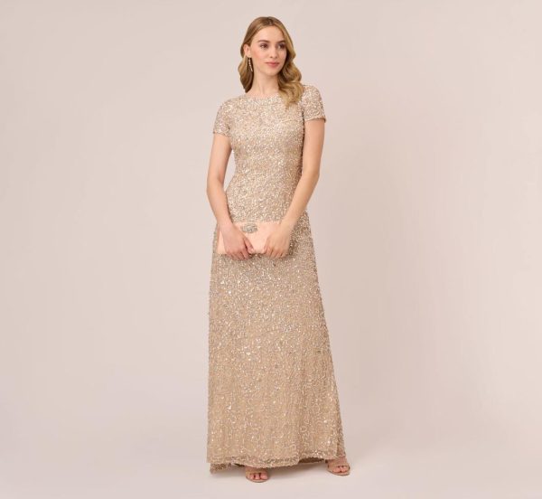Scoop Back Sequin Gown In Champagne | Women Adrianna Papell Long Dresses