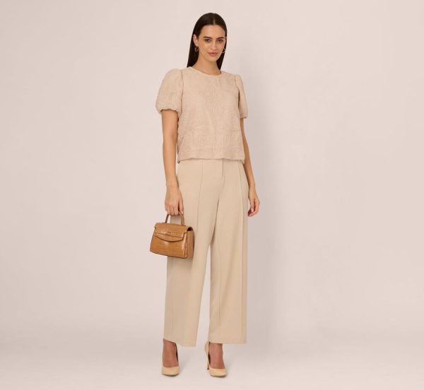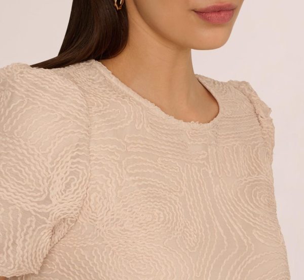 Tonal embroidery in an allover squiggle design adds subtle texture to this everyday top. The short sleeves and hem feature a bubble construction for a softly draped silhouette. A keyhole button closure at the back of the neck finishes the design. Versatile and super easy to style, this crew neck top looks just as good dressed up with a pencil skirt or dressed down with a pair of jeans.|