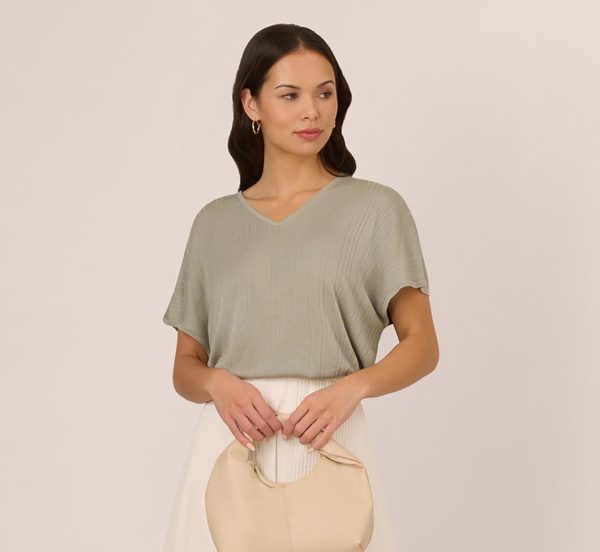 Short Sleeve Lightweight Rib Knit Sweater Top In Seafoam Mist | Women Adrianna Papell Sweaters