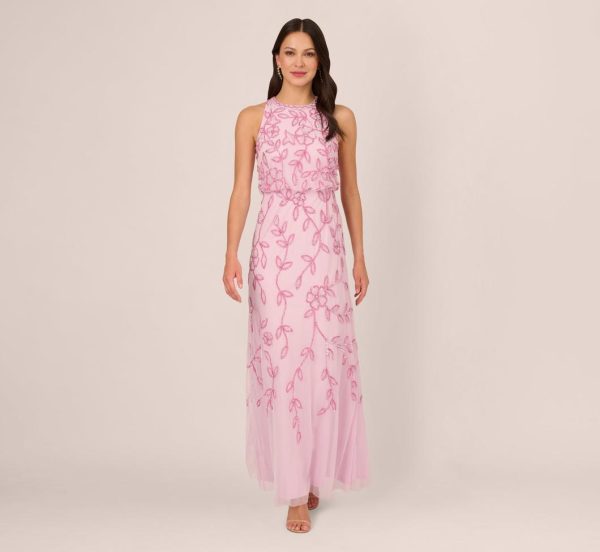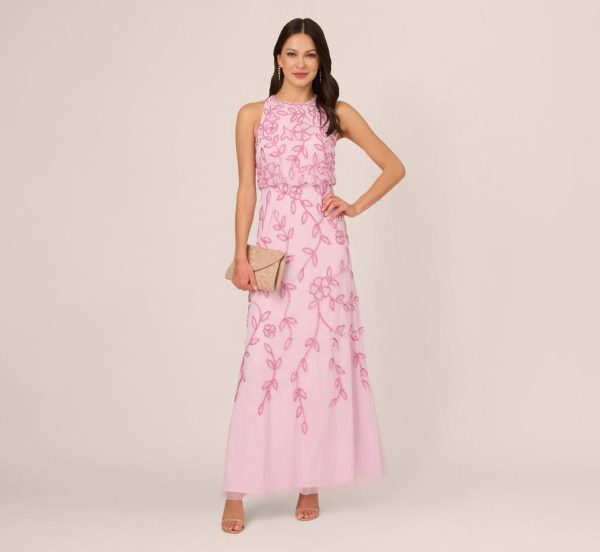 Sleeveless Blouson Mermaid Gown With Jasmine Beading In Pink Lace | Women Adrianna Papell Long Dresses