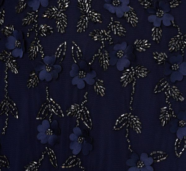 Make a stunning entrance in this exquisite A-line gown featuring a sophisticated illusion neckline that creates an elegant, refined look. The intricate allover floral beaded design is enhanced with dimensional fabric petal accents, delivering breathtaking texture and visual depth. The graduated embellishment pattern flows gracefully from the shoulders to the hem, creating mesmerizing movement with every step. Complete with a discreet back zipper closure, this dress offers flawless elegance for your most memorable formal events.|