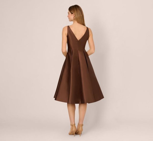 Sleeveless Mikado Fit And Flare Midi Dress With V-Back In Espresso | Women Adrianna Papell Party
