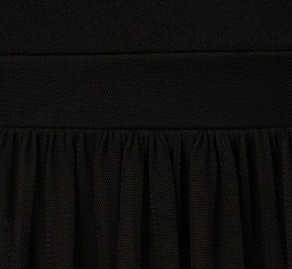 This black maxi evening dress features a dramatic A-line silhouette with a sweeping tiered skirt in mesh fabric. Spaghetti straps and a notched neckline create a delicate face-framing effect. A darted bust and back zipper closure ensure a fitted look to the bodice. Classically glamorous, this stunning black gown is perfect for all your formal and black tie events.|
