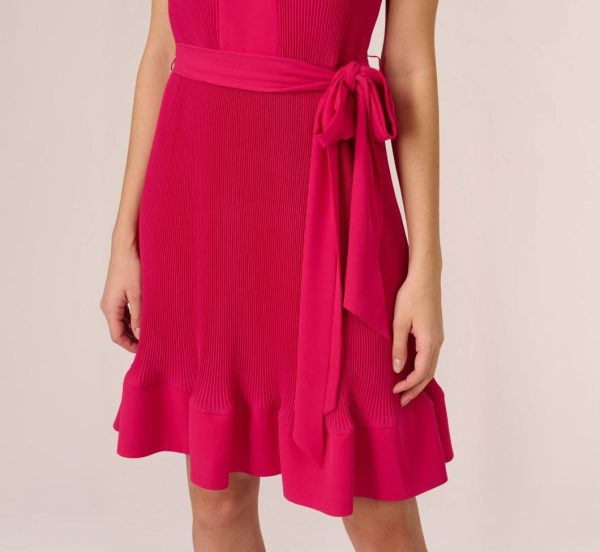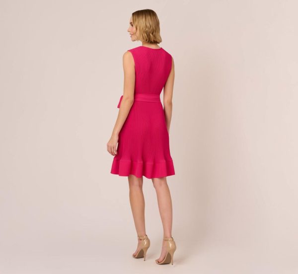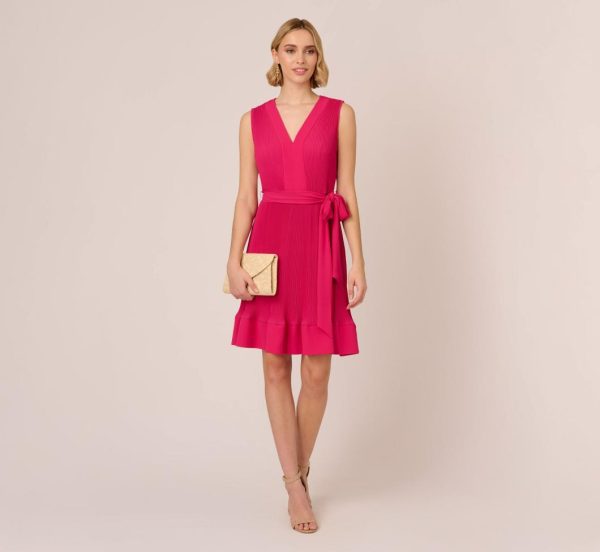 Sleeveless Pleated Dress with Self-Tie Waist in Hot Pink | Adrianna Papell