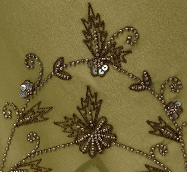 Trending fairy tale-inspired details elevate this beaded dress. This cocktail midi dress features a v-neck bodice with spaghetti straps, a drop waist, and a paneled, sharkbite skirt. A luxe georgette overlay extends beyond the partial lining of this vintage dress and is lightly beaded throughout the design. Boasting adjustable straps and a zipper closure at the center back, this beaded midi dress is a sparkling look. As seen on TikTok.|