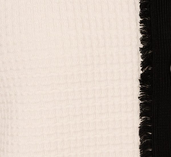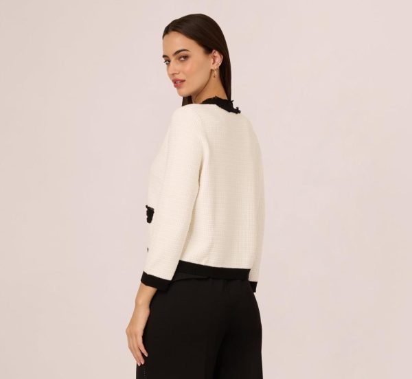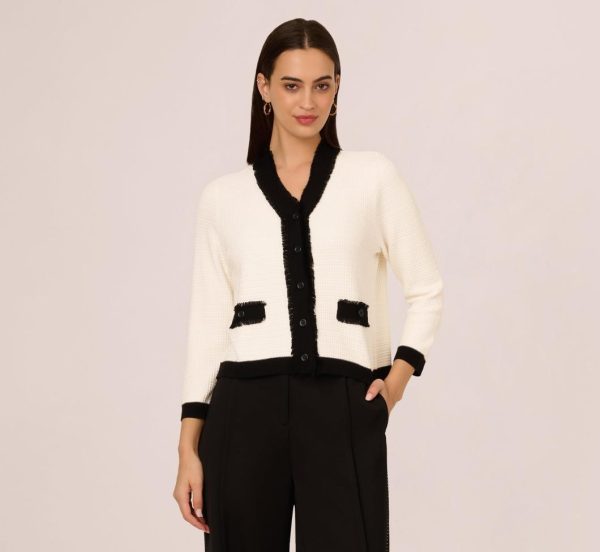 Waffle Knit Fringe Trim Cardigan In Ivory Black | Women Adrianna Papell Tops